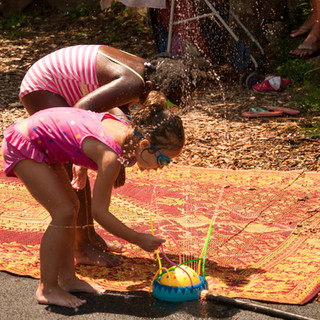 In woodworking with David, the kids have made model cars, houses, tiny beds and chairs, and innumerable swords and battle axes (don't worry, they know not to whack each other with them). They've also created a small working catapult, and one camper made a gift box. Thanks to Niall Templeman and the other parents who have donated wood and tools. In cooking with Joy, the kids have made pancakes, basil pizzas, and lemon grilled veggies. Yum. With Mary Esther in Science and Nature, we've been learning about the mycorrhizal network of fungi and trees, looking at different kinds of mushrooms, and working all these concepts into the script for the play. Symbiosis is the word of the week- you may hear your kids singing a song about it. And in music, we are working on singing melody and harmony as we practice the songs for the play. "Won't you take me to...funghitown!" In small groups, some kids are also learning their instrument parts for the play, using drums and other percussion instruments, ukuleles, guitars, piano, recorders, flute, violin, and saxophone. Group D's excursion this week with Joy was to Van Saun Park, where the kids got to see animals like capybaras and ocelots, and play in their huge new sprinkler park. In-between all these exciting activities, there was plenty of time to relax with friends in the shade, or play in the playground.